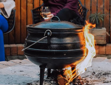 Our potjie pot is ideal for hearty, slow-cooked meals while camping — simple, classic, and made for the bush.